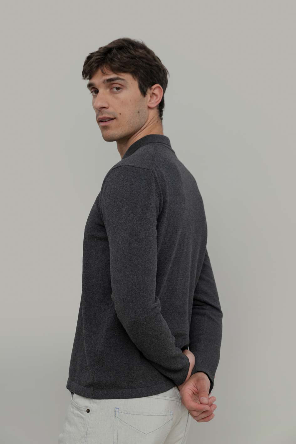 Der glatt rechts gestrickte Stoff erzeugt eine saubere und vielseitige Textur, perfekt für jede Gelegenheit. Die gerade Linie und die reguläre Passform machen dieses Langarm-Poloshirt zu einem Kleidungsstück, das dich Saison für Saison begleitet.