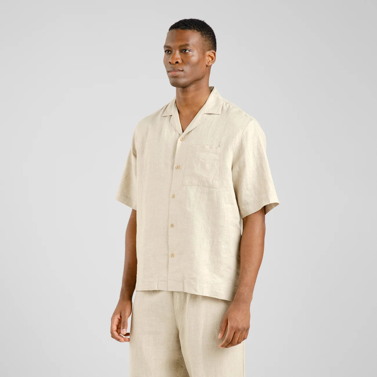 Lockeres Sommerhemd aus 100% Leinen. Mit Resort-Kragen, Brusttasche und Corozo-Knöpfen auf der Vorderseite.
