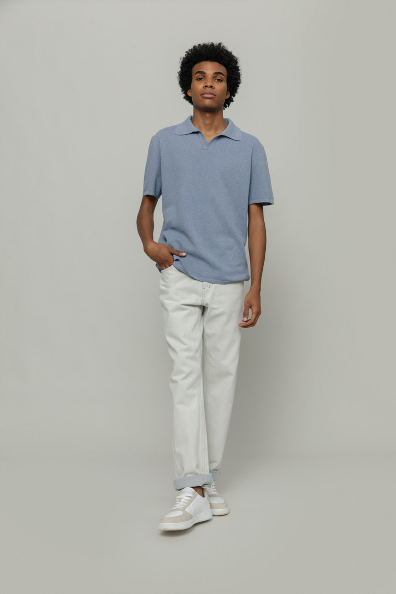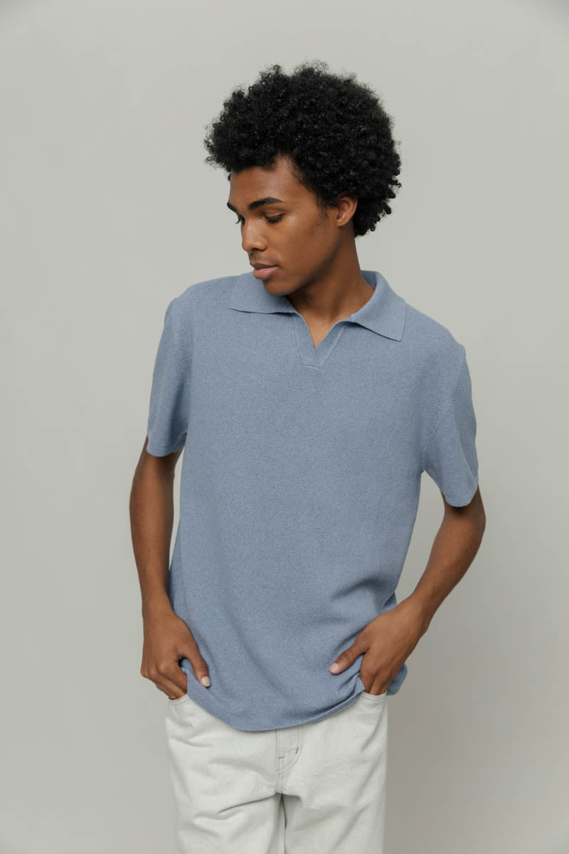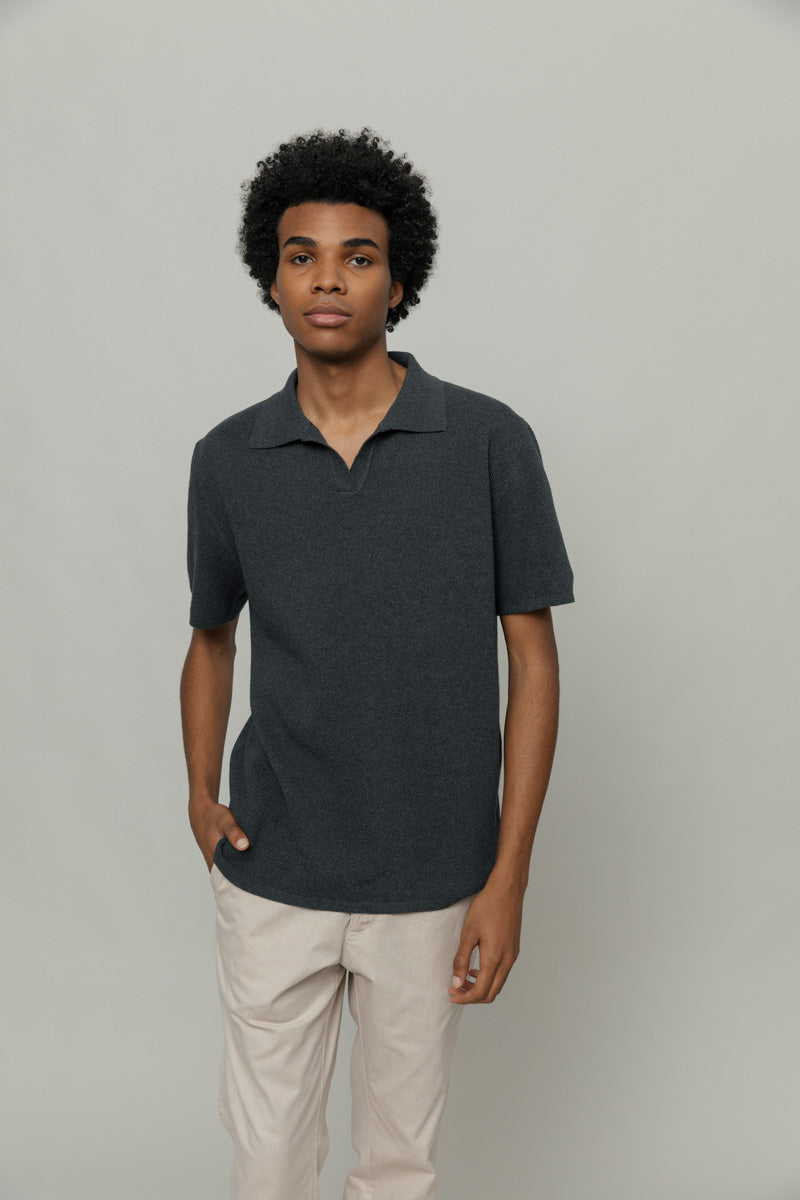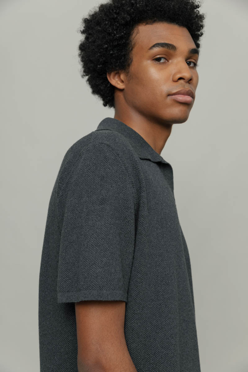 Herren Poloshirt mit kurzen Ärmeln und ohne Knöpfe, hergestellt aus nachhaltigem Garn aus 100% Bio- und recycelter Baumwolle. Das Piqué Strickmuster verleiht eine leichte, dreidimensionale Struktur.