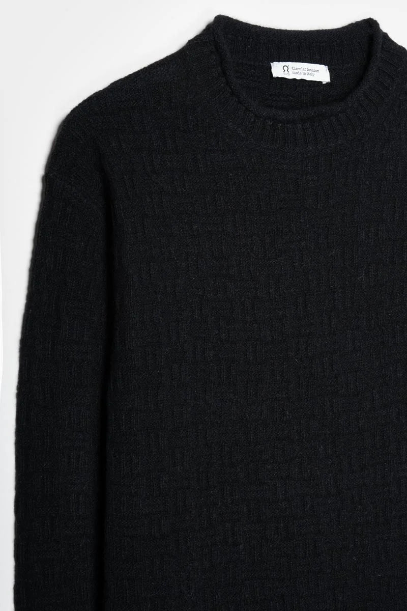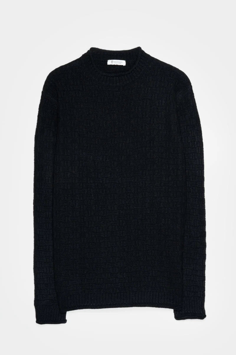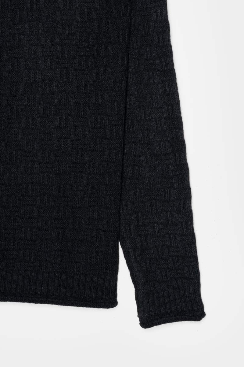 Dieser winterliche Herrenpullover zeichnet sich durch sein Strickmuster mit Ziegelstein-Pattern aus, das eine originelle, dreidimensionale Textur erzeugt.